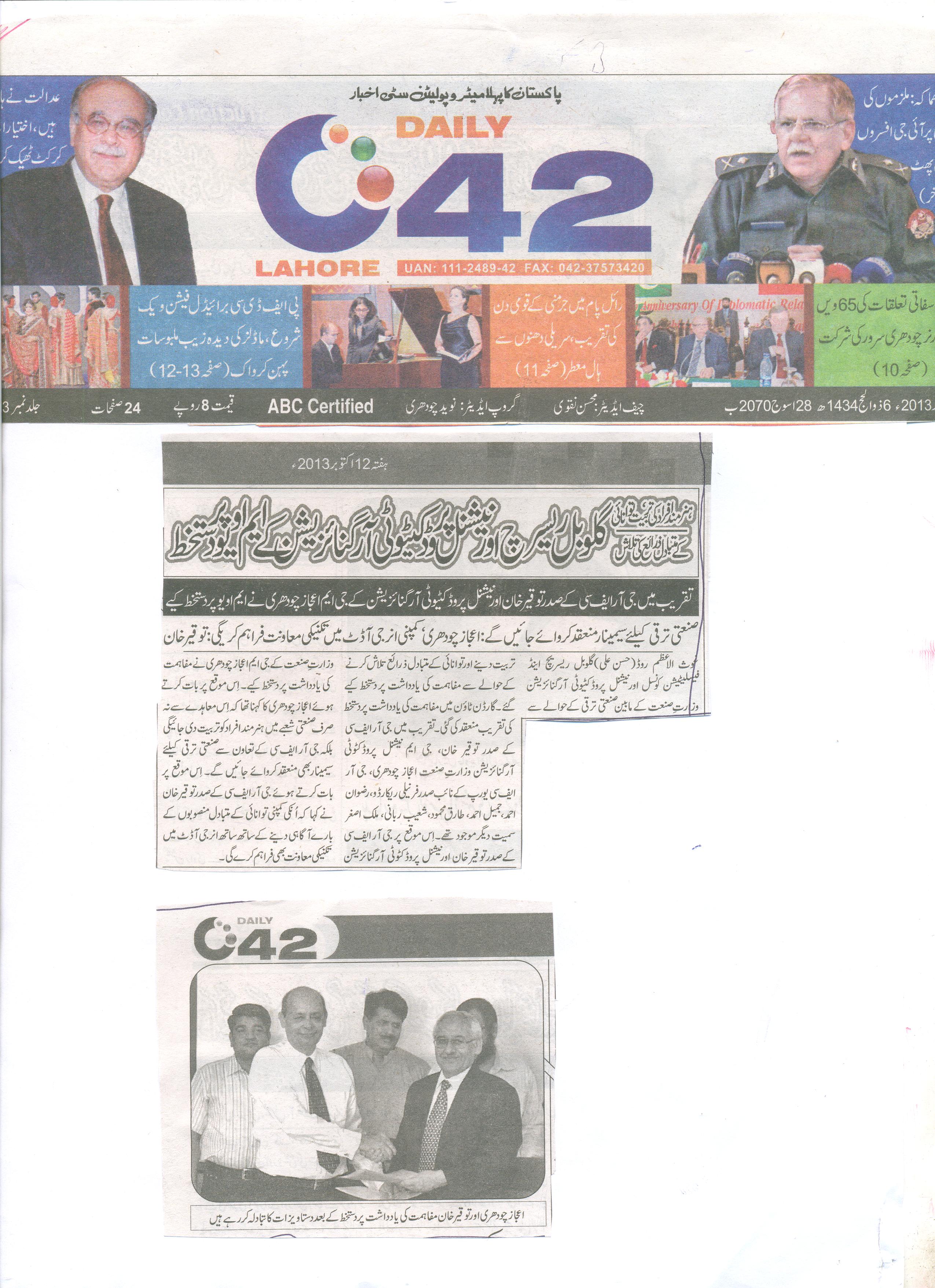 We are pleased to join hands with GRFC and looking forward to work together for productivity improvement in all economic sectors of Pakistan.